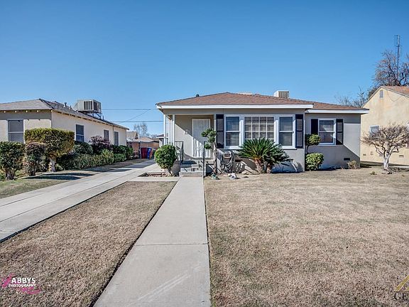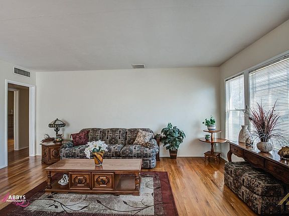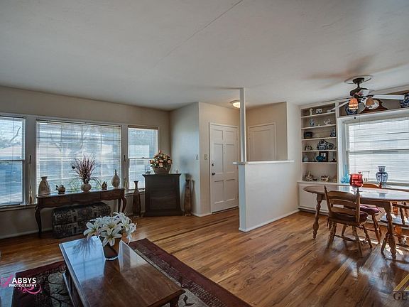 Cute, cozy, adorable. Sweet greetings right from the curb to front door. Freshly painted outside and inside. Lovely hardwood floors in this 2 bedroom, 1 bathroom home. Kitchen is light and bright with granite counters, stone back splash, white cabinetry, white appliances, newer tile floor, indoor laundry, adorable vintage bathroom, formal dining room with built-in hutch with lots of storage, fans, newer lighting. Large yard, covered patio, one car garage. Mini blinds thru-out, most furniture can stay with the home. This one is ready to go.