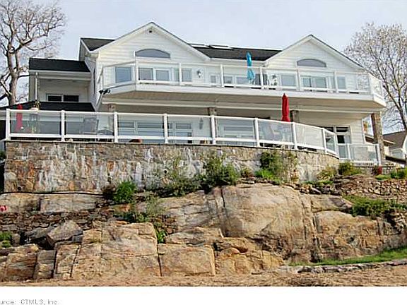 Direct waterfront modern contemporary with sandy beach and deep water mooring on Long Island Sound. This rare find has 4 spacious bedrooms and 3.5 designer bathrooms with a bar and 2 wrap around decks for entertaining your guests.