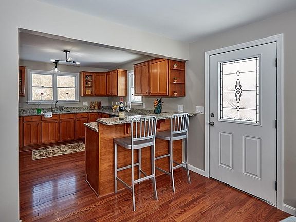 Move-In Ready Colonial with a front porch and situated on almost 2 private acres! This recently updated home features a living room with a woodstove, a spacious dining room which is open to the kitchen - featuring new granite counters and a breakfast bar. There is a study/home office and a 1/2 bath which completes the first level. The 2nd level has 4 bedrooms and the full bath. There is a full walk-up attic for future expansion. Some of the many recent improvements include painting, new carpeting, lighting, the granite countertops and a new shed. The professionally landscaped lot has sprinklers and a Cul de sac location too!