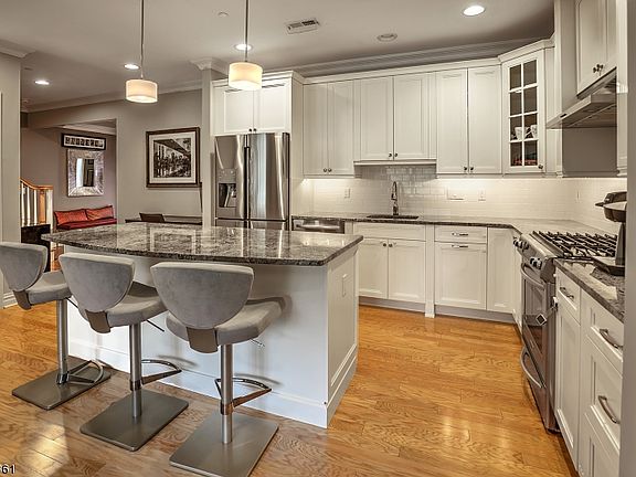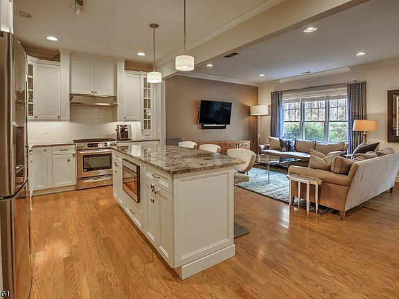 Private interior unit, Chelsea model, backs to woods adding extra serenity to this stunning open concept home. 1st fl features white kitchen center island, KitchenAid ss appliances, recessed and designer lighting, adjacent to living and dining room with 9 ft ceilings and hw floors. Private rear deck. Master features designer wall paper, walk-in closet and beautiful en-suite bath. Double vanities, oversized walk-in shower with frameless glass, separate water closet,.2nd bedroom, bonus rm. Mins from center of Morristown, 287 and public direct trains to NYC. Private unit, don't miss it Bonus room on second floor to use as you wish. Square footage per tax records. All measurements are per builders floor plans.