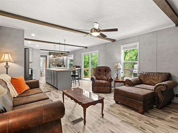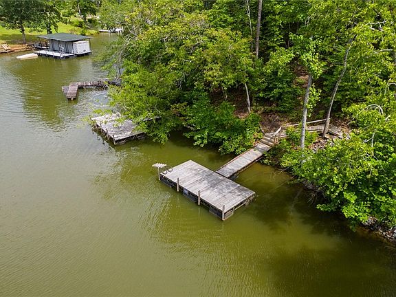 THIS is YOUR chance to escape to small town American AND live on the lake. Retreat to this charming 3 bedroom, 2 bath home, with over 1200 square feet. This home is tucked away in a quiet, friendly lake community. The home offers the perfect blend of comfort, functionality, and serene outdoor living. Enjoy relaxing or entertaining on the covered deck or the wrap around back deck complete with a retractable shade for year round enjoyment. A concreate path leads to the covered front porch and handicap-accessible ramps provide easy access to both decks, while the beautifully landscaped yard bursts with colorful flowering plants throughout the season. Inside the open-concept kitchen features a large island, ideal for gatherings, and flows seamlessly into the cozy breakfast area with direct access to a large, wraparound deck--perfect for morning coffee or evening grilling. The primary suite includes an ensuite with a soaking tub, separate shower, double vanity, and walk-in closet. Additionally, a detached carport on a concrete pad offers convenient parking and a wide gravel trail provides drivable access to your private dock nestled in a peaceful cove. Energy efficient windows and insulation help ensure you enjoy the comforts of home while saving on energy consumption. Whether you're seeking a relaxing weekend getaway, a full-time waterfront lifestyle, or a short-term rental investment, this property delivers comfort, natural beauty, and lakefront living! Come and see it. Make an offer. Start living your dream.