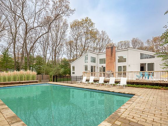 Retreat from the traffic and crowds to this delightful one level contemporary and pool on an acre. Loads of light, space, soaring ceilings and a great layout for easy living and entertaining. 3 large bedrooms (2 with queen beds, one with two twins), 2 baths (one is part of the master suite), large dining area, living room looking out to the pool, spacious kitchen and a garage. And everything is in pristine condition-the furnishings, kitchen, bathrooms, pool and more.Just repainted inside and out, new pool liner and living room furnishings. Quiet street yet convenient to bay beaches, villages and the ocean.