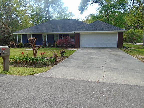 Warm & welcoming 3BR/2BA split plan located in Williamsburg Estates in Petal - pretty covered front porch - foyer - spacious great room with step-up ceiling - kitchen has stained cabinets and white appliances - walk-in closet in master bedroom - office nook - nice wooden deck - home is in flood zone but has never flooded
