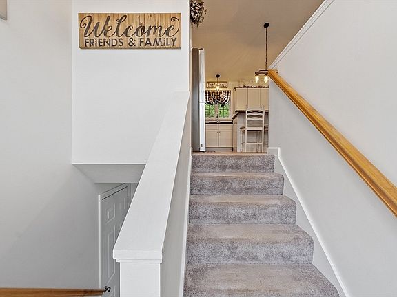 Welcome home to this 3 year young, energy efficient split entry home. Head upstairs from the 2 car garage to find a beautiful, open space with a lovely kitchen welcoming you with granite counters and stainless steel appliances. The dining area flows nicely into the living room with cathedral ceilings overhead and ample natural light. Down the hall you will find a gorgeous full bathroom and three bedrooms. The primary bedroom with ensuite bathroom easily holds a king size bed and offers privacy from the main living area. The remaining 2 bedrooms are nicely appointed and round out the upper level. Downstairs you will find a large, unfinished area of the basement just waiting for you to put the finishing touches if you need additional living space. Off the dining area you will find an oversized deck, the perfect place for a morning coffee or evening beverage. Solar panels on the roof will help offset your energy costs in this energy efficient home. Nothing to do here but move in!