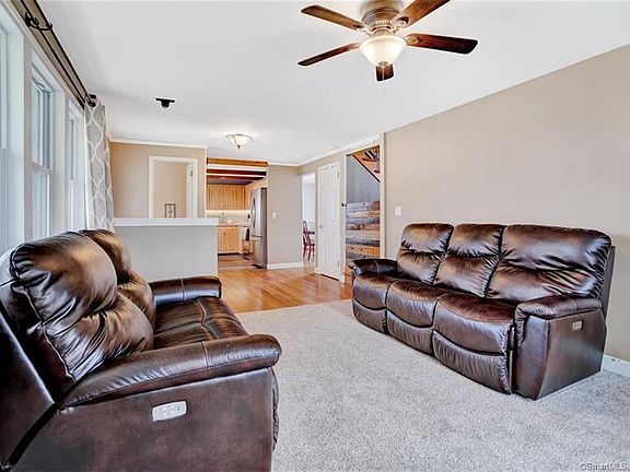 Beautifully updated home with views of the river. This home has it all. Nestled along the shores of the CT River, it's perfectly set up for picturesque sunsets all year round. Enter through the welcoming front porch into an open family room with cozy pellet stove and front yard views. The spacious, updated kitchen has beautiful exposed beams creating a charming eat in atmosphere. With ample counter-tops, a movable center island and large eating area this kitchen can accommodate all your needs. The dining room with beautiful hardwood has glass screen doors opening on a private patio with stunning views of the river. The beautiful family room with hardwood flooring and pellet stove fireplace opens to a fabulous three season sunroom with vaulted ceilings and river views and access to the expansive deck.The sunfroom adds an additional 228 square feet of living space. The upper level features an updated master bedroom with a large walk-in closet and full bath; two additional bedrooms and a full guest bath. The lower level is partially finished featuring a bonus room with built in cabinetry and a craft-island. With an expansive yard that features a free-standing shed with electricity, patio and over-sized deck and abuts Winton Park Natural Area offering views sunsets over the CT river Who knew such a gem could be had Town has 1100 square feet but the home is actually 1525 SF