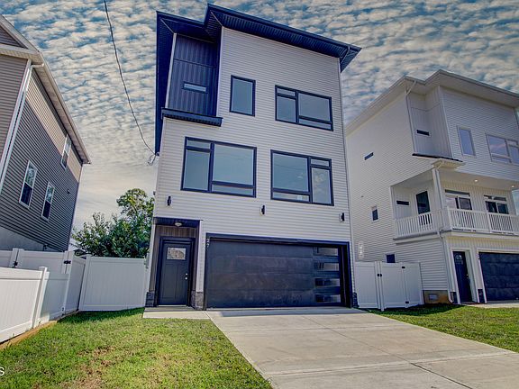 NEW CONSTRUCTION!! This 3 bedroom, 3 bath contemporary beach home is 2 blocks to the beach and has winter views of the water! There's an additional lower level storage room with a slider to the backyard. Natural light streams into the home through oversized windows. Adorning the kitchen are white shaker cabinets along with quartz countertops & matching quartz backsplashes. Completing the kitchen is a breakfast nook & a Samsung stainless steel appliance package. The dining area flows from the kitchen into the Living Room. Primary bedroom has en-suite bath & two walk-in closets. Low-E windows. 2-zone heating & cooling. Double-wide garage. Fenced-yard with sod. Decks off of Kitchen & Primary Bedroom. Tax Abatement for 5 years. Convenient to shopping & transportation to NYC. Visit today!