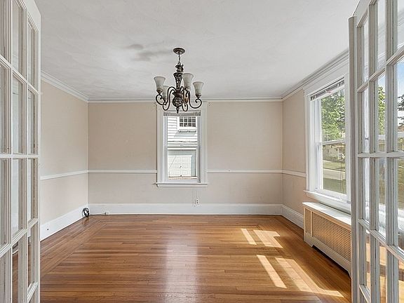 *** 9/8: New electrical service upgrade *** Bring your ideas to make this house your home! Well loved for many years, this home is ready to welcome its new owners. Upon entering, you will find beautiful French doors and a large living area illuminated by natural sunlight. While there is a formal dining area, in the kitchen, you will find ample space to accommodate an eat-in kitchen or a floating island -- the options are endless! This home offers 3 bed rooms and 2 full bathrooms, off street parking, and detached garage. The level yard and deck make this home the perfect one for entertaining. Move in just in time to settle in and enjoy the beautiful New England Fall.