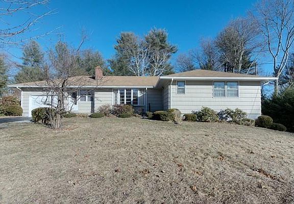 SPRING MARKET IS HERE! And this spacious home is ready to sell ! With over 1800 square feet of one floor living this home has a lot to offer. Meticulously maintained by one owner, this open floorplan ranch has gleaming hardwood floors throughout almost every room. Explore all the options this beautiful home has to offer. Conveniently located on a quiet, cul-de-sac and family friendly neighborhood, yet minutes to the Mass Pike. It's a commuters dream. The brick fireplaced living room is showcased by an enormous picture window that brings in a lot of natural light. The dining room overlooks the large, flat backyard and then there's a bright and spacious sun room that also overlooks the private tree lined yard. The bonus/family room which could also be used as a playroom or large mudroom, the options are yours. Come see for yourself. MBR is a nice size with large closets and half bath; 2 more spacious bedrooms right down the hallway proximal to the full bath. A huge unfinished basement..