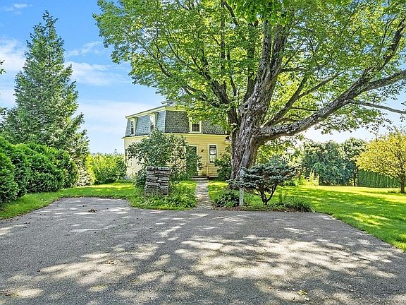 Back on Market! Seller has added additional land for buyer to maintain view - Now on 5 acres! Views, Views, Views! What an opportunity to own this Mansard Colonial with scenic views. Set off the road, this unique and charming home features a large living room with hardwoods, woodstove with brick surround and built-ins with French doors out to the deck. Updated kitchen with updated cabinets and appliances - with views and one of a kind sundial wooden floor. 2 Bedrooms upstairs with full bath and closets. Nicely finished lower-level family room with 1/2 bath and laundry. New interior paint in bedrooms and living room. Rolling backyard with perennial gardens and patio are waiting for new owners to uncover all the potential. Small garage and outbuilding. Title V approved - Quick close possible.
