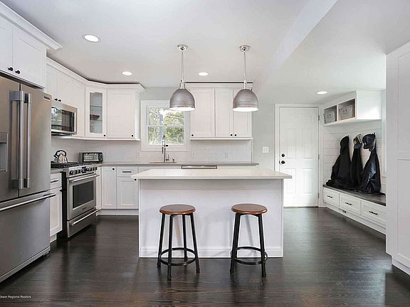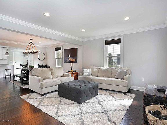 PICTURE PERFECT COLONIAL IN ONE OF RED BANKS FAVORITE LOCATIONS! Beautifully remodeled upgraded throughout offering a versatile open layout. Manhattan-chic finishes w/ high ceilings, hardwood flooring and stunning natural light. New kitchen w/ custom white cabinetry, stainless steel appliances, quartz counter-tops and center island with seating. Expansive family room w/ over-sized windows. Beautifully updated bath w/ designer tile custom vanity, generous sized bedrooms w/ custom window coverings. Rear deck overlooks fully fenced backyard paver patio w/ fire-pit for outdoor entertaining! Basement for easy storage, driveway for parking. Short walk to DOWNTOWN RED BANK the Navesink River, mins to train station, NY Ferry Beaches. NO PETS!