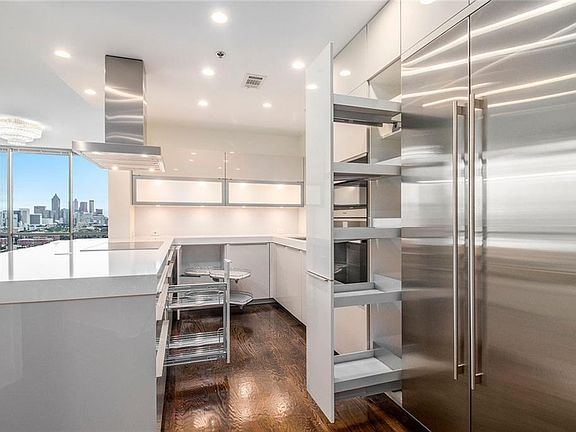 This is a can't miss opportunity, offering unobstructed panoramic views of Midtown, Downtown, and Buckhead. This unit blends luxury and modern design, appealing to the buyer who seeks only the finest in every detail. The gourmet kitchen stands out as the true heart of the home, featuring over $170,000 in custom upgrades. Designed by Poggenpohl, the kitchen is a masterful combination of elegance and functionality. From the custom coffee maker pull-out with a dedicated outlet to the soft-close lazy Susan for effortless storage, no detail has been overlooked. The Miele appliances bring high end performance to your home. A full-height wine fridge completes the space, ensuring your wine collection is kept at the perfect temperature while adding a layer of sophistication to the room. What truly sets this unit apart is its unique layout—the stove has been repositioned on the island, making this the only unit in the building with this design. This layout not only creates a seamless cooking experience but also makes the kitchen a statement piece. The open-concept design is enhanced by wide plank, true hardwood floors, which flow throughout the living space, creating a sense of warmth and refinement. In addition to the kitchen, Poggenpohl designed the custom entertainment wall, further elevating the living area with sleek lines and a practical, stylish design that complements the entire space. As a resident of The Atlantic, you’ll enjoy luxury amenities including 24-hour concierge service, a resort-style pool, a fitness center, a theater room, and much more. The home’s location is unbeatable—just steps from Target, Publix, and numerous dining options, with Midtown, Buckhead, and Downtown just minutes away. This is more than a condo; it’s a lifestyle. Don’t miss your chance to own this one-of-a-kind unit, offering exclusive features, luxury amenities, and an unmatched location.
