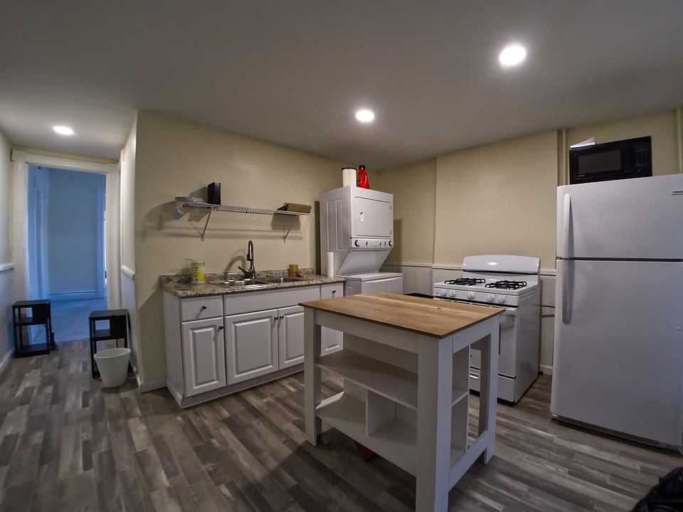 Now available for lease: a freshly renovated furnished 3 bedroom 1 bathroom apartment within walking distance to downtown Troy and RPI. Comfy new carpeting just installed. High ceilings! Includes basic but comfortable furnishings. In-unit washer/dryer. Directly across from the community farming center, get fresh veggies at the farm stand during the growing season! Located on a quiet corner with easy street parking and great natural light. Would be ideal for students or professionals working or studying in the Troy area. If desired landlord will provide individual locks and keys for each bedroom. 1 year lease standard (willing to discuss shorter leases case-by-case). Street parking. Roommates allowed. Landlord pays water & trash and provides a $100/mo credit towards electricity & gas, tenant is responsible for the remainder. Pets may be considered on a case-by-case basis.