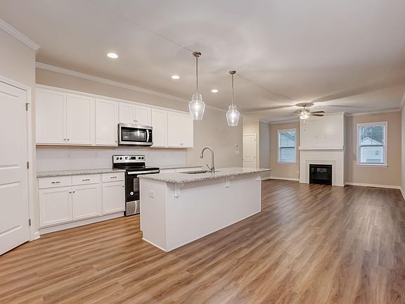 Charming 4 bedroom, 2 and half bath home with large bonus room. Mudroom off garage with laundry room that is set away from other living areas. First floor master suite with large closet and dual vanities. Open layout living room, kitchen and dining area. Kitchen has large island with sink, and a pantry finishes out the kitchen. Covered rear porch overlooks back yard.