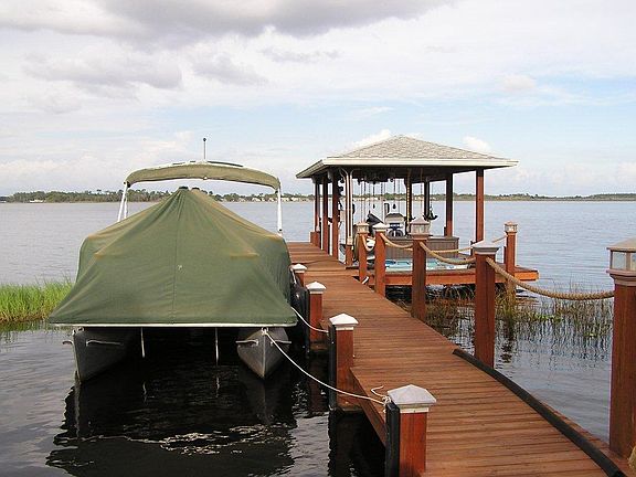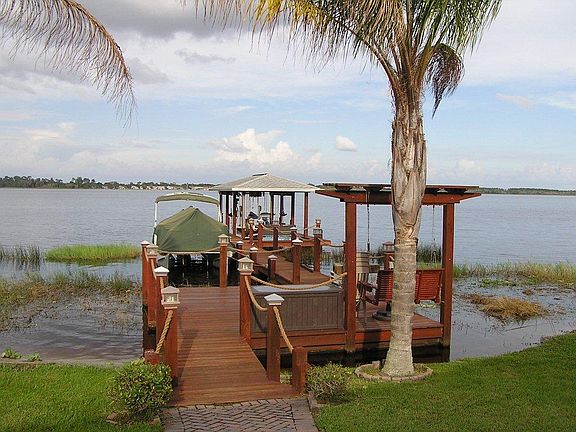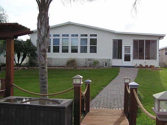Swiss Village Lot #270 2 Bed/2 Bath/1607 sq ft/ $104,900 Location, location, location. This home is a furnished 2006 executive, luxury lakefront home in a 55+ community that offers the complete package. It is beautiful inside and out with everything you'd want in one spot to enjoy your retirement. Turnkey! The backyard boasts an extra long pier with a covered boathouse, boat lift, and patio deck. You can sit in the swing and enjoy the view. Beautifully landscaped all around the home. Shed has A/C and storage galore with a sink so you can pursue your hobbies and clean up before entering your home. The enclosed lanai faces the lake offering bug free enjoyment of the great Florida sunshine. There is even a sandy beach area to give that resort feel. The inside of the home is equally stunning. The colors are warm and welcoming. Big living room, business center, two large bedrooms with large walk-in closets. The master bath has a large walk-in shower. A stackable washer/dryer with a sink is inside making it easy to do the laundry. You really have to see it to believe it! This one will not last long. Call and schedule a tour today! You will not be sorry.