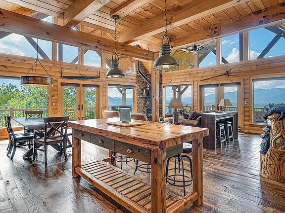 Literally the best mountain and lake view you have ever seen. Experience the enchanting beauty of the Appalachian Mountains with this captivating timber frame home. This home is the perfect embodiment of rustic charm and luxury. Situated on over 3 acres, this mountain retreat offers a serene and private escape from the hustle and bustle of everyday life. Boasting miles of breathtaking panoramic views of the Smoky Mountains and Fontana Lake. Just a short drive from the charming town of Bryson City, you'll have access to a vibrant community with hiking trails, a private marina, and multiple common areas to enjoy. With a true gourmet kitchen and custom hardwood floors to the spa-like bathrooms, this home has every need you could desire. Both the main and lower level allow drive-up access and the main level master bedroom and laundry it is easy access for all. With a comfy loft on the upper level, 2 bedrooms a full bathroom allowing plenty of space for the family and guests to spread out. The lower level includes the den and additional full bath with a 3-car garage. Fontana Lake is known for its fantastic fishing and boating. For a full walkthrough video search the address in YouTube.