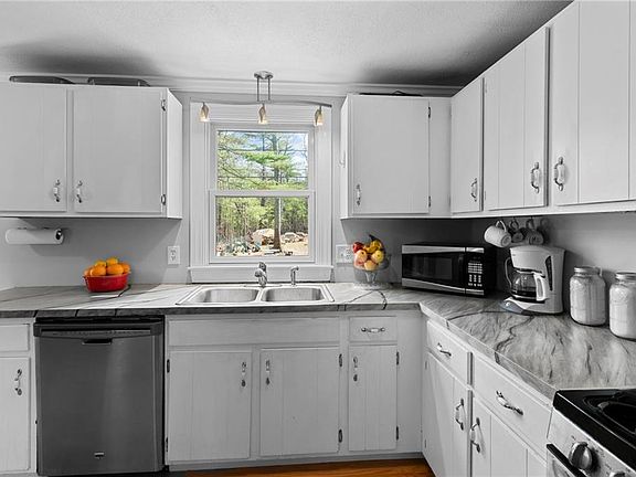 BEAUTIFULLY remodeled country home set on 3.55 Acres. PRIVATE setting. Gorgeous hardwoods. Updated kitchen with SS appliances. Wonderful downstairs space with a woodstove. 2 bedrooms and extra rooms for a private office, a playroom...Use your imagination!! A slider off the kitchen that leads to a large deck that overlooks the backyard that has PLENTY of space for gardens. There is also a custom made chicken coop! Please do no drive to this property without an appointment. It is on a private road