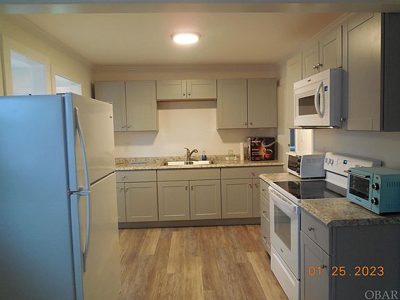 A single level, 3 bedroom/1 bath home on a 16,241 sq. ft. lot, in the heart of Ocracoke, within walking distance to restaurants, Ocracoke Coffee Co., Zillie's, shops, galleries, library and the harbor. The large front yard is perfect for outdoor family activities. Fully renovated interior; new plumbing, electrical, kitchen cabinets, double sink, bathroom, flooring, sheetrock, central heating/cooling (heat pump), insulation, hot water heater, interior painting, doors, closet systems and fixtures. A large utility room with a new washer and dryer can be accessed from the garage or dining area. A charming sunroom, located off the kitchen, is a sweet place to enjoy meals or your morning coffee. Just add your personal furnishings and you're ready to call it "home". Interior color and fixture choices work well for a year round home or vacation rental. The heated and cooled attached garage with a concrete access ramp and floor is a great place to store bikes, beach gear, a vehicle or game room. Updated septic and an installed 30 amp hook- up for a travel trailer in the back yard.