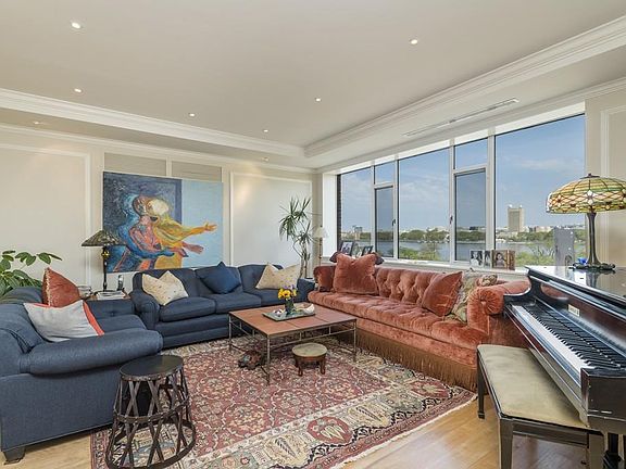 Remarkable Charles River facing home with stunning two bedroom plus den, two and a half bathroom floor through condominium now being offered. This truly special condominium comes with three parking spaces (two covered, one street), a massive, grand private front facing sundeck and a common roof deck. Enter by direct elevator access into the formal foyer and be welcome by panoramic views of the Charles River Esplanade on one side and views of the courtyard and Beacon Street on the other. The building and grounds are maintained meticulously by the building's live-in super.