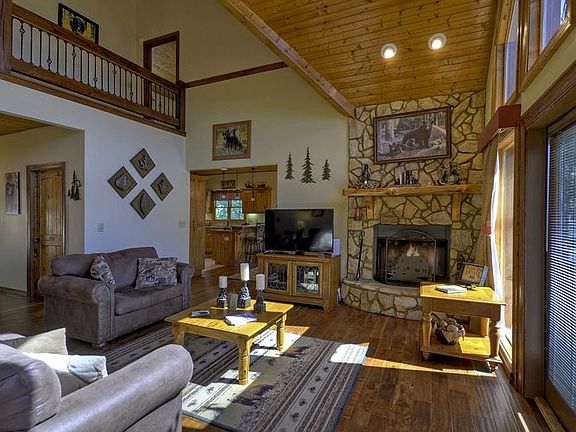 Black Bear Ridge welcomes you to view this beautifully well designed log sided mtn home resting on 1.51 acres with incredible mtn year round views for you to capture thru the walls of windows! As you enter custom upgrades throughout with hand hewn black walnut floors, rod iron accents, expansive great rm, w stone accented/ wood burning fireplace. Well designed large upgraded kit with two wall ovens, granite, lots of cabinets opening to well lit dining area. Spacious plan with enchanting bonus loft area and large unfinished basement, 3 bed 2 1/2 baths, pantry! EASY paved rd, 15 min from Ellijay, EXCELLENT maintained! Gated. 06/12/17