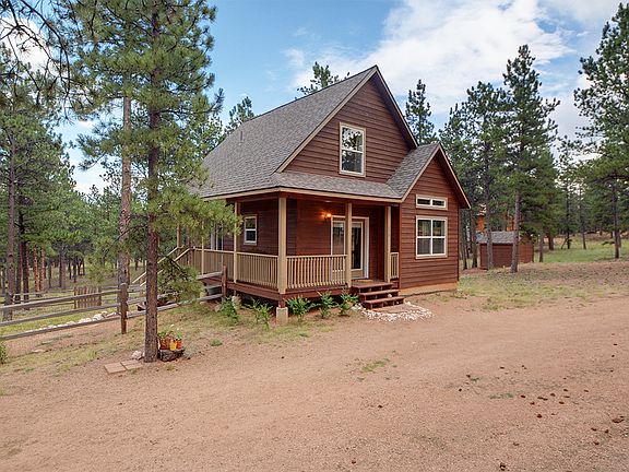Looking for your own slice of Colorado? This custom Colorado home is on 2 private acres in a unique location that is mountain living, but yet only few minutes to HWY 24, 5 minutes to Florrisant and 20 minutes to Woodland Park. A lovely covered wrap-around porch greets as you enter this open, bright, & well maintained custom home built in 2003. The home is thoughtfully designed with living room, kitchen, large entry, bedroom and bath all on the main level. The second floor has a loft overlooking living room, master bedroom,