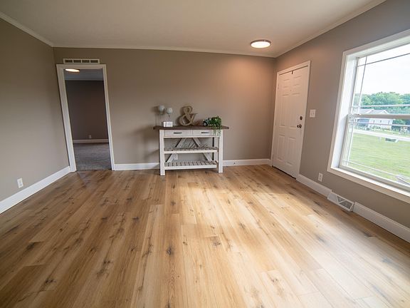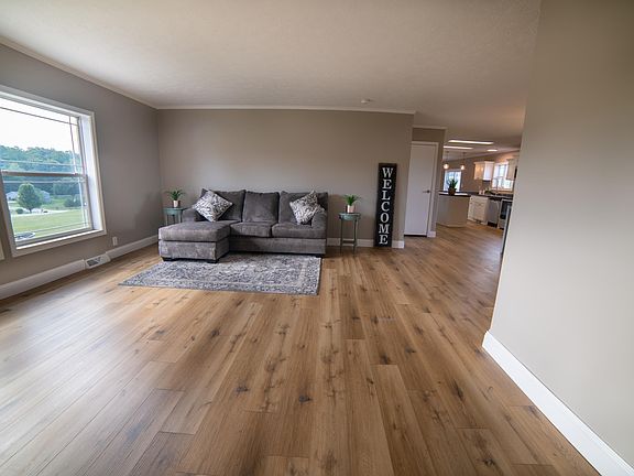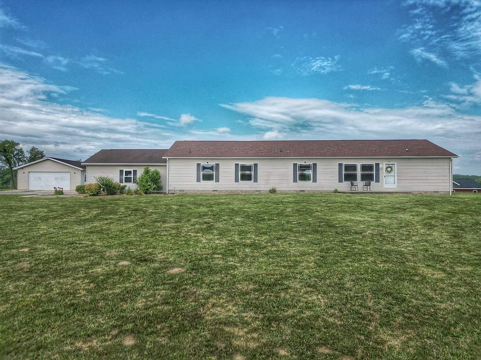WELCOME HOME to your adorably remodeled FOUR to FIVE bedroom, THREE bathroom sprawling ranch on almost a one acre lot! You will love the curb appeal as you drive up your driveway to be welcomed by your TWO car attached garage as well as another oversized TWO car detached garage with plenty of yard space surrounding the home. Stroll up your sidewalk and step through your front door to be greeted by your spacious open concept living room, dining room, and kitchen area. The kitchen is spacious and boasts ample cabinet and countertop space. You will love the fresh paint colors, new flooring, and light fixtures as you venture into your second living space with plenty of natural light coming in as you overlook the beautiful, country feeling backyard. Your laundry room is spacious and offers the dual purpose of a mud room/laundry room area that is super convenient and adjoins your attached garage. The layout of this home is phenomenal with a split bedroom floor plan offering a dreamy master suite on one side of the home that has a spacious bedroom that connects to the master bathroom and offers a garden tub and separate stand up shower as well as a walk in closet. The master suite also offers another private bedroom space connected to the room that could be an ideal nursery or private office. On the other side of the home you will find three bedrooms. Two of the bedrooms have a jack and jill bathroom situated between them. The other bedroom has the third full bathroom located right next to it. Utility averages are: Western Utilities District of REMC ($140/month) and North Lawrence Water. Home comes complete with kitchen appliances and a one year HSA Home Warranty with Buyer Seven Star Upgrade. If you are looking for an adorable, remodeled, spacious home, check this home out today!