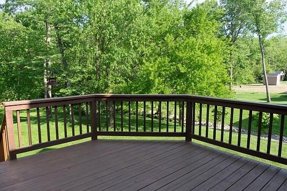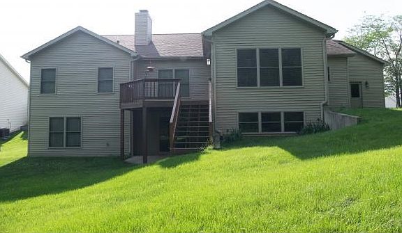 Spacious Mt. Zion ranch with walk-out basement. Open concept with cathedral ceiling on main floor. Beautiful kitchen and sun room have hardwood floors. Stainless steel appliances. 2 bedrooms up and 2 bedrooms down. Sit on the patio or deck and enjoy the private wooded backyard. No neighbors behind.