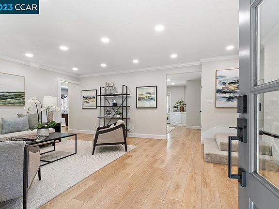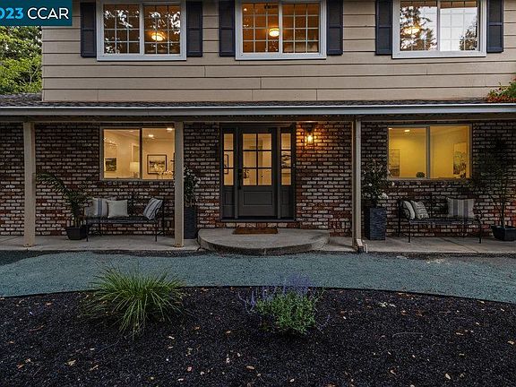 Modern Farmhouse with stunning updates, fabulous floor plan and located in a private setting yet close to amenities. Gorgeously remodeled 5BD home plus bonus room with attached oversized 2 car garage. A farmhouse door welcomes you to the living room with double doors to the home office/5th bedroom. Spacious family room with sliding glass door provides an indoor/outdoor connection and opens to the dining area. Recently remodeled kitchen includes white cabinets, gorgeous countertops, white subway backsplash with marble inlay and stainless steel appliances. Breakfast dining area has a sliding door to a charming outdoor patio. Finishing the first floor is the playroom/bonus room, updated powder room and laundry. The spacious and sunny primary suite has abundant closet spaces and an updated ensuite bathroom with double sinks and large shower with dual shower heads. Three additional generously sized bedrooms share the recently remodeled bathroom, with dual sinks, oversize walk-in shower, and a separate tub. The .75 acre lot features patios, lawn and lots of space for lounging, recreation, and relaxation with room for further development by the new owner. Fantastic location close to - vibrant downtown Walnut Creek, trails and parks, charming Alamo, and award winning schools.