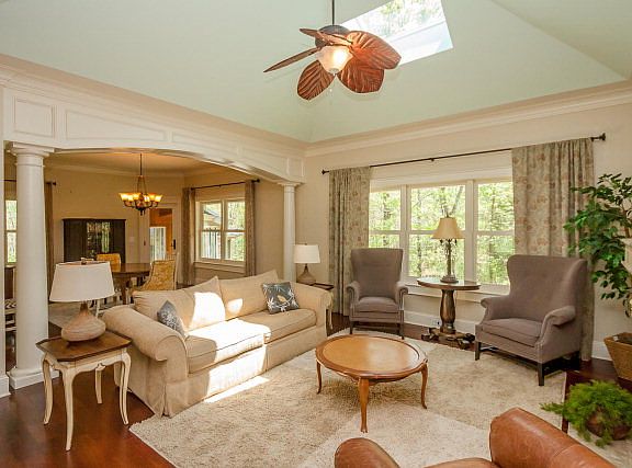 A one-of-a-kind custom built home on a wooded 5+ acre lot. The spacious open floor plan features Brazilian cherry HW floors, solid raised panel interior doors, crown molding, soaring ceilings, custom lighting, stone fireplace, gas logs & a variety of high end finishes. The kitchen features: custom cabinets, subway tile backsplash, snack bar, oversized pantry, built-in desk area & solid surface countertops. The owners suite offers a neutral color palette & soaring ceilings. The spa like bath includes a custom vanity, tile shower surround, garden tub and a walk-in closet. A nice sized bedroom, full bath, oversized mudroom & an impressive octagonal sunroom w/ cypress walls & tile floors complete the main floor. You will also find a large family room, an office, large laundry area, third bedroom & full bath. Landscaped grounds w/ a stained concrete patio, a storage cottage & a 2300 sq ft 3-bay garage w/ a double level workshop. The HVAC is a thermal system on a horizontal loop.