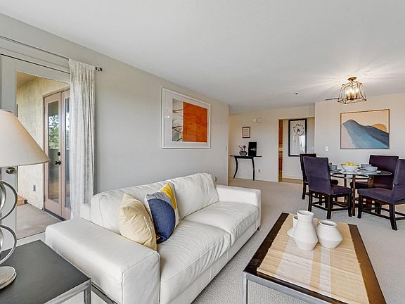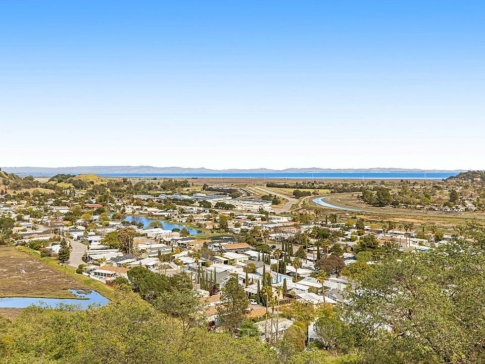 Corner end unit with panoramic views of the bay, hills, Gallinas creek & more in an elevated hillside setting. Access to the outdoor deck with views from the living room and both bedrooms. Most of the interior was just repainted, brand new carpet and new floors in both baths & entry. Great location not far from the freeway & shopping with no traffic noise. Single level unit down 1 1/2 flights of stairs from the upper parking lot where there is guest parking and only one flight of stairs from the lower garage area where there are 2 single car garages with storage rooms at the back of the garages for this unit. Additional storage room in level below garages. Kitchen with breakfast bar and separate dining/eating space off kitchen as well as living/dining room. Laundry closet with full sized washer & dryer. Master bedroom with large walk-in closet and attached bath. Property is located in the desirable Miller Creek School district.