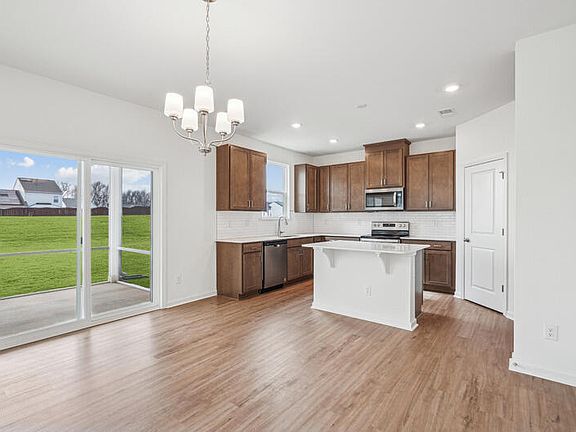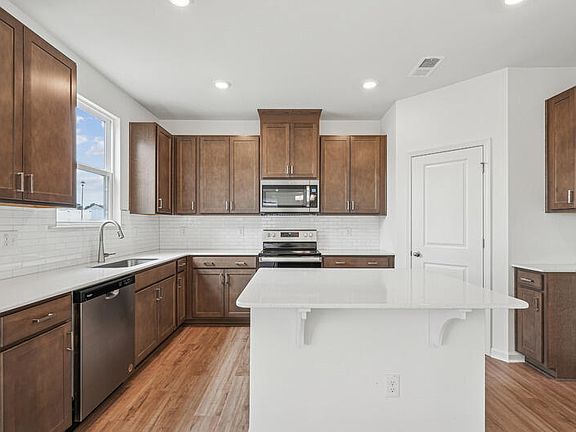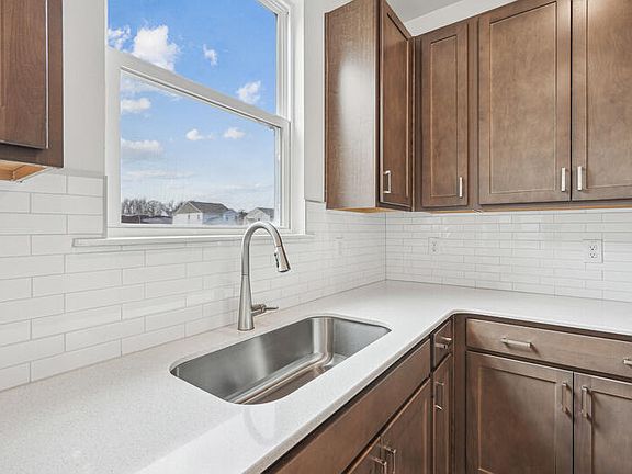 This energy-efficient, two-story 3 bedroom 2.5 bath home with french double door den showcases fiber cement siding for added curb appeal. Inside, discover an open floor plan with 9-ft. ceilings and a spacious living area. The kitchen boasts a quartz island and tops, 42-in. upper cabinets and Whirlpool stainless steel appliances. Relax in the primary suite, which features a walk-in closet and connecting bath that offers a dual-sink vanity and linen closet. Enjoy the outdoors on the screened-in back patio. Ready now and can close in 30 days!