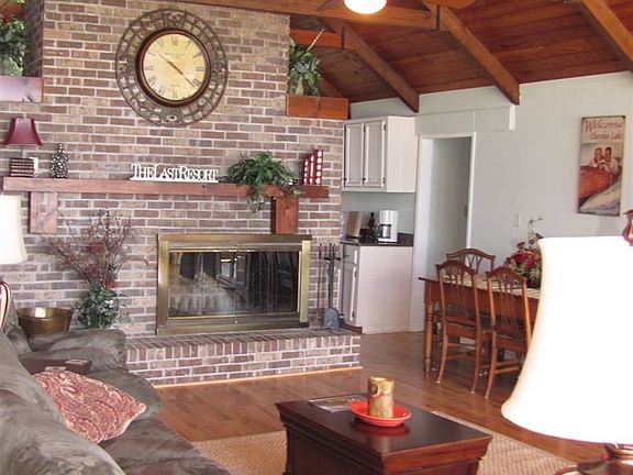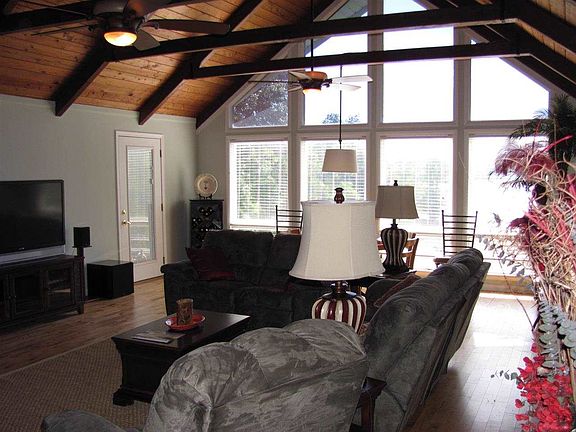 Dock remains. Great view of main channel, screened porch, 800+ sq ft of basement, hardwood floors, all glass in great room, extra large lot, very private in back.