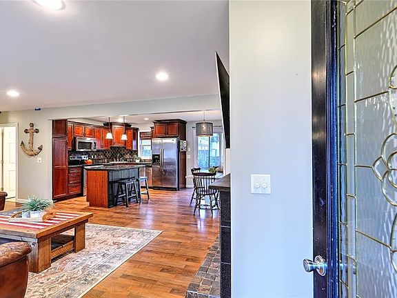 This charming ranch with open floor plan, updated kitchen and baths, fireplace living room, completely fenced in yard and attached garage will make the perfect home. Enter the open dining, living, kitchen area that features a lovely wood burning fireplace. The oversized front window and sliding doors to the back yard allow for plenty of natural light. The classic kitchen has a granite countertops, a center island, stainless appliances and cherry cabinets. A lovely updated bathroom with jacuzzi bath/shower and three bedrooms complete the living space. An attached garage and laundry are easily accessible from the kitchen. Move right into this lovely and well cared for home located in the established area of Conimicut Point Park and closeby the conveniences of schools, highway and shopping.