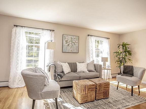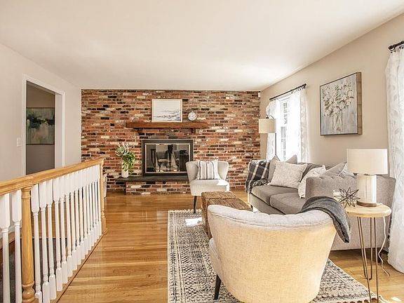 Welcome home to this three bedroom two bath ranch with a two car garage and close to school, shopping and Fields. BRAND NEW SEPTIC. Updated Kitchen with island and a GAS fireplace in living room. Hardwood floors throughout, replacement windows, Finished basement w/ Bar area, Bath,Laundry, New Carpet & Separate Access to Garage. Alarmed, Rear tiered deck and a spacious yard. Roof is 15 years old & 1 Layer. Home has oil heat & electric heat in 2 of basement rooms. But GAS in house too. Minutes to Providence & Route 6 Shopping. MUST SEE
