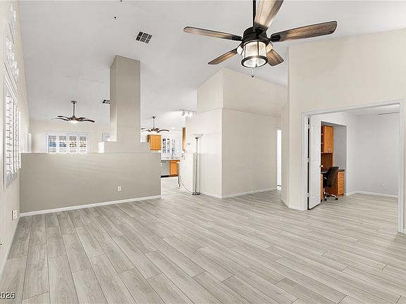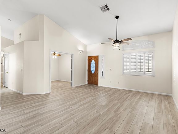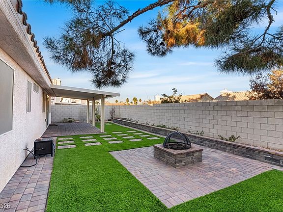 Luxury meets Efficiency in the heart of Henderson. This rare single-story gem w/3 car garage eliminates the 'hidden costs' of desert living with a fully OWNED solar system—no leases, no payments, just pure savings. Whether you're cooling the open-concept living room during a July day or enjoying the low-maintenance backyard, you’ll do it with the peace of mind that your energy is already paid for. "SOLAR SYSTEM OWNED AND INCLUDED ON THIS HOME! Brank new Vinyl Plank Flooring throughout. Newer A/C unit installed 2023. Located near shopping, restaurants, parks and good access to the 215. Brand new Hot Water heater 2025. Lots of cabinets in the kitchen and huge pantry! Kinetico soft water system with R/O. Andersen sliding back door. Updated landscaped backyard with includes turf, pavers, designer wall and firepit to relax after a hard day. Custom fans with lights throughout. Shutters on all windows. New stone Custom Kohler shower in the primary bath. Garage cabinets for extra storage.