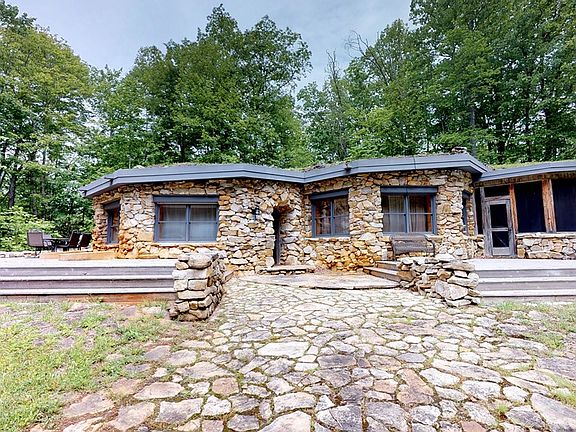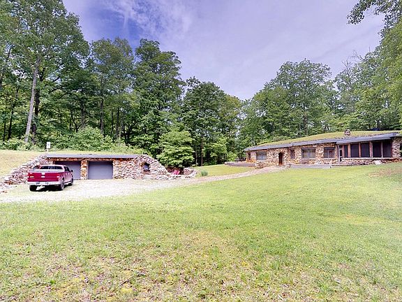 MUST SEE 3D VIRTUAL TOUR! Truly unique underground house with a large bonus room and on over 3 acres located in the Grand-view Falls community just outside Andrews. It features high end rock masonry, craftsman trim details, a robust concrete shell, awesome privacy, a very noisy creek and a mountain top location. The detached double garage/shop is also earth sheltered and ready for tools and equipment and with plenty of entertaining space. Relax on your front porch and listen to nature. All within walking distance of waterfall, park and commons area and numerous walking trails. A must see and one of a kind in our area!