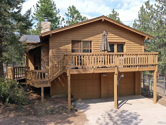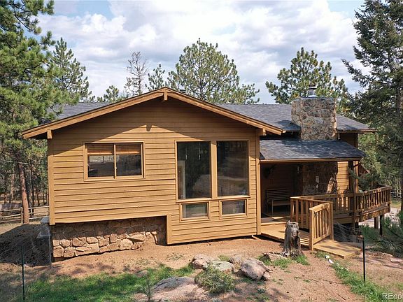 Come visit WOODSIDE PARK and see all this great HORSE PROPERTY has to offer! A full three acres of Equestrian Heaven await you and your family, surrounded by majestic trees and incredible mountain scenery. You’ll love the ease of access, with US Hwy 285, restaurants, a gym, general store, a hardware store, all within 1.5 miles. The parcel is flat and level, a completely usable expanse of land that has been mitigated for pine beetles and dead trees, and the well is legal for watering horses. There are two barns, and the property is fully fenced and cross fenced with an automatic gate. There is a drinking post/automatic horse waterer, a dog run, and MILES of DEDICATED RIDING TRAILS through the Woodside subdivision. Inside the home, there’s 1,833 square feet of living area on 2 floors, including an open-concept main level floorplan, a living room AND family room, and a practically-designed kitchen with marble counters and attractive wood flooring. A moss rock fireplace in the living room means warm winter nights, and there’s also a free-standing stove in the lower level and a new Rinnai gas heater for added comfort. Added features include a Generac home generator and a Mini-Split system in the primary bedroom. Bedrooms are well-proportioned and the primary bedroom offers a convenient door leading onto the deck. Relax outside the living room on the composite deck, take a leisurely dip in your private HOT TUB, or soak up all that great natural sunlight! At night, the Seller loves watching the stars and the Milky Way and feels that this property offers all the quiet, privacy, and personal security you could wish for. The location is WONDERFUL--Staunton State Park is just 10 minutes away, Pine Valley and Buffalo Creek only 15-20 minutes away, 40 minutes to Denver, and Guanella Pass ½ hour away. Located in the unique equestrian community of Woodside, you’ll love everything about this choice property! Check out the 3-D Tour and photos and call for a personal showing today!