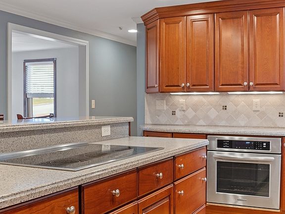 Cozy fireplaceCathedral ceilingKitchen aid ss appliancesExposed beamsDining areaGleaming hardwood floorsFrench doors