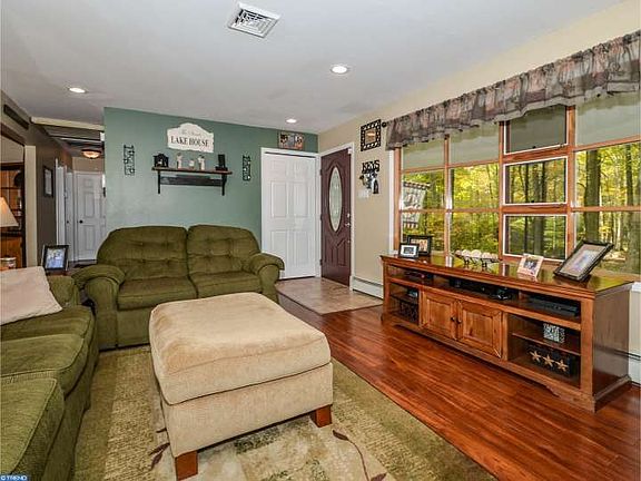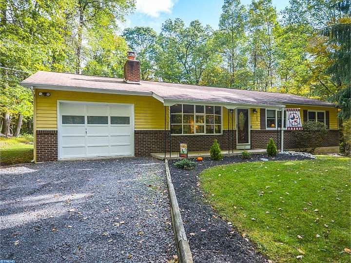 Totally Renovated and Move In Ready, Impeccably kept home on 5.25 quiet acres a mere 1.2 miles from Lack Nockamixon. Welcome to 270 Deerwood Lane. Set back from the road this delightful Rancher boasts a modern decor renovation with the utmost attention to detail. The home is newly painted throughout, new Pergo flooring in the entire living area and bedrooms all newly carpeted, and bathrooms completed with ceramic tile. All windows and interior & exterior doors are replaced (with exception of the bay window). From the front door enter into the cheery Living Room with large bay window and brick fireplace. Follow into Dining Room with great view of the rear yard from the slider to the rear deck. The kitchen is completely remodeled also and boasts all new appliances. The Kitchen offers ample counter space for all types of cooking creations and breakfast bar for entertaining. Down the hall from the living space, the Master Bedroom is complete with half bath and ample closets in addition to two other tastefully decorated bedrooms, one of which is presently a nursery. Both Bathrooms are complete renovations too with everything replaced. The ceiling fans in each room are new and the electrical panel is new in addition to a current home security system installed . Central Air is two years old. The basement is ample in size and while presently unfinished, offers endless possibility for future finishing. The deck out back is generous in size overlooking the tranquil rear yard. This house is a mere 1.2 miles from Lake Nockamixon Marina and Visitors Center, so for the lake and boating enthusiast and for the perfect enjoyment of nature at it's finest this home is ideal. Call to see for yourself today.