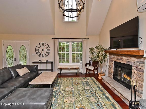 BEAUTIFUL 3bd/2.5ba Cape Cod nestled in the 5-STAR AMENITY-FILLED Arrowhead Lake community. This bright/airy retreat has a Living Room w/ a stone fireplace creating a cozy atmosphere, a SPACIOUS Eat-in Kitchen w/ granite countertops & SS appliances, & an elegant 1st-floor Primary Suite w/ a WIC & bath. A half bath & laundry also on this floor. Upstairs, 2 additional bds, a full bath, & a loft area perfect for an office or reading nook. Outside, enjoy a SPACIOUS backyard w/ a deck, firepit for cozy gatherings, hot tub for ultimate relaxation, & a covered front porch to bring your morning coffee. In Arrowhead Lake, you'll have access to pristine lakes, sandy beaches, community pools, & sports courts. The community's STR-FRIENDLY policy makes this home an excellent investment opportunity. Located near popular Pocono attractions, including hiking, casinos, shopping, & skiing, this home offers the perfect blend of relaxation & adventure. Don't miss your chance to own this lovely propertyschedule your private tour today!