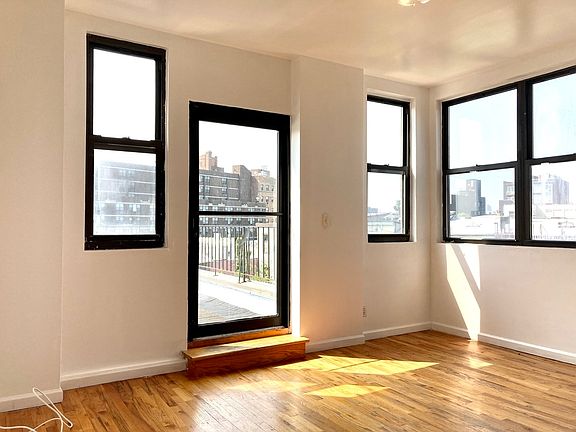 Gorgeous one bedroom apartment with private terrace, Lots of space and natural light on the fourth floor in the rear of the building. Hardwood floors Central a/c Stainless steel appliances Dishwasher 5 min walk to Graham ave L train stop Generous closet space in bedroom as well as living room Laundry in building Shared backyard