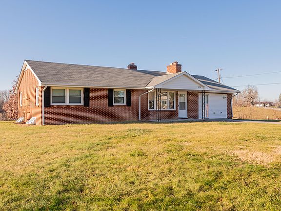This classic brick ranch on over 1 acre with sweeping pasture views is waiting for you to put your personal touches on it! From the covered front porch, you enter the living room with a large feature masonry fireplace & hardwood floors that continue down the hall & into the bedrooms. The eat-in kitchen has a door leading to the backyard & a kitchen sink view of the yard, pasture, & mountains that you'll adore! The large attached one-car garage has been turned into a workshop space, but could easily be converted back. Downstairs, you'll find a full unfinished basement with potential for more living space! There are washer & dryer hookups in the basement & in the garage to choose from! With a location close to town but with country views, this home has so much to offer as you make it yours!