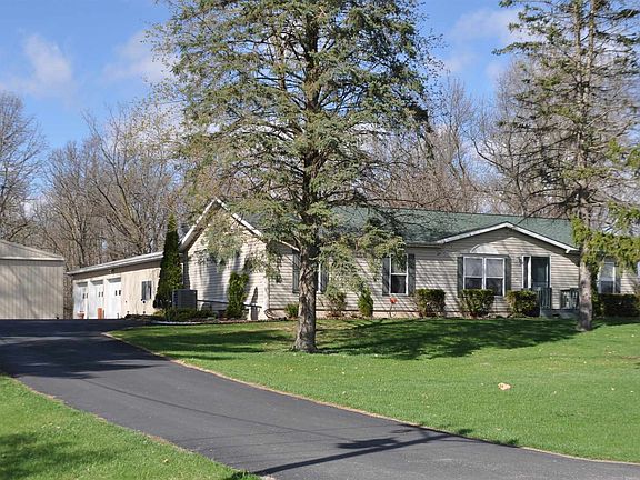 Wonderful memories are waiting to be made here! Ideal 3.22-acre property in rural Fremont boasts a mix of lush grassy lawn and woods with mature trees, and even has a creek running through it! The superbly maintained home shows pride in owership. The Master bedroom has a 6' x 8' walk-in closet and huge bathroom with two sink vanities, garden tub, and seperate stand-up shower and commode room. The kitchen is wonderfully bright, with ample counter space and tons of cabinets. The dining room has a large built-in hutch, and overlooks the deck and backyard. Deck has a retractable awning. Spacious laundry room with high-end Maytag washer and dryer included. Huge pole barn with workbenches, built-in storage, and metal roof. Between the enclosed breezeway and 3 car garage is an awesome man cave with gas fireplace. Recent improvements include: asphalt driveway recently sealed, new roof in 2016 with 35-year shingles, new LeafFilter gutter guards with lifetime warranty. Quiet, peaceful setting with everything you could want right there, ready to move in!