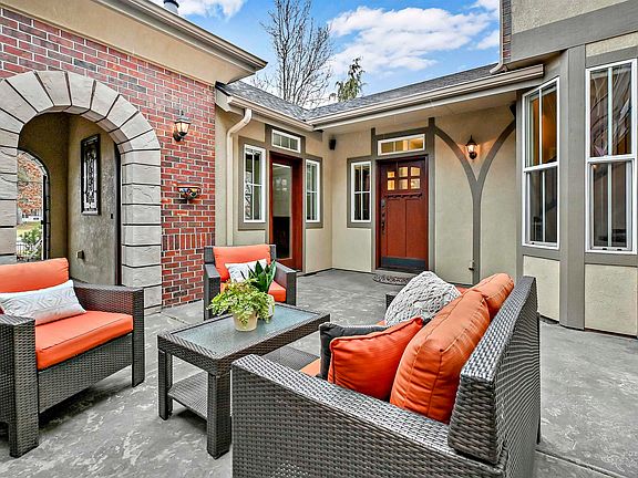 Rare opportunity to own a private retreat set in the heart of downtown Eagle. Prime walkable location to shops, restaurants, Albertsons grocery store & the Boise River Greenbelt. Gated entrance to a private courtyard w/ stamped concrete patio & gas fireplace. Open concept living area w/ gourmet kitchen, granite counters, central island & stainless appliances. Main level master suite w/ spa-like bath, soaker tub and walk-in closet. Additional main level den/guest room complete w/ fireplace, adjacent full bath & patio access. Upper level includes 2 bedrooms (or secondary living area) each w/ walk-in closets, view deck, Jack & Jill bath. Quality craftsmanship w/ sprawling hardwood floors, multiple fireplaces, extensive millwork, arched accents. New interior paint & roof in 2021. Central vacuum, wired for surround sound & front gate call system. One of only a few homes in the community w/ a 3 car garage! Community features privacy fencing, common area, guest parking. Live the ultimate Eagle lifestyle!