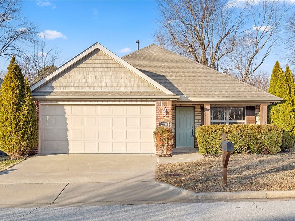Minutes from the Razorback Greenway, U of A, Fayetteville Square, Washington Regional Medical Center, plus shopping/dining & easy I-49 access! Welcome to your centrally-located 3 bed/2 bath all-brick home right in the heart of Fayetteville! Beautiful crown moulding and decorative archways highlight the completely open living, kitchen and dining room. Enjoy the warmth of the gas log fireplace in the living room with raised ceiling or prepare a meal in the kitchen that includes granite countertops (including the island with bar seating area) and stainless steel appliances (plus, fridge is also included!). New carpet in all bedrooms, new paint throughout interior and on front door. Primary bedroom has tray ceiling and crown moulding throughout. Primary bathroom includes jetted tub and spacious closet. Relax on your covered back porch...or your covered front porch! Back porch has gas line for grill. Keypad on Garage door for easy access. Security system already wired in! New Roof in 2020!
