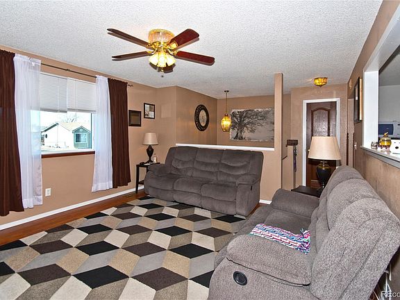 Nice Bennett Bi-Level with Large Kitchen backs to Open Space! Laminate main Living Room with ceiling fan and pass-through to Kitchen. Spacious eat-in country Kitchen with tile floors, counters and backsplash, upgraded composite sink, walkout to 11'x6' raised wood deck. Two Bedrooms on Upper Level with Full Bath with tile floor and jetted tub. Carpet Lower Level Family Room. Two Lower Level Bedrooms, one with en-suite tile 3/4 Bath with tons of cabinet space, the other with separate vanity/craft/storage area. Newer 3 y/o vinyl windows and slider. Brand new furnace, central AC, 50 g dwh, upgraded front door with storm door, security system (Xfinity). Oversized 16' wide x 22' deep finished garage with newer overhead door with keypad, service door to rear patio. Large 34'x12' patio, extra gravel off-street parking space. Level fenced rear yard with four in-ground sprinklers, two storage sheds, new electric & gas meters. All Kitchen appliances and clothes w/d convey. Property backs to 20+ acres of ag zoned open space, double gate to rear for rv/trailer/boat storage in yard.