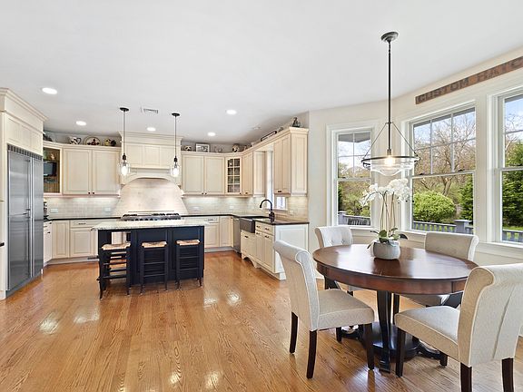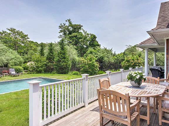 First time offering in North Haven, Sag Harbor. The Windmill House, once part of an expansive farm in North Haven, is sited on over 3 acres with mature landscaping and lush gardens. This picturesque family compound features a 4,600 sq. ft. custom-built Traditional home, separate pool house and a heated gunite pool. The gracious front porch of the main house opens to a bright two-story foyer with high ceilings. The first floor offers a living room with fireplace, formal dining room, spacious vaulted great room, open, gourmet kitchen with room to dine and a powder room. The large first floor master suite opens to its own back deck. Vaulted tray beadboard ceilings with recessed lighting throughout the main floor. The first-floor mudroom with office area and laundry connects to the oversized 2 car garage. The second-floor features 3 en suite bedrooms, with a bonus room / fifth bedroom and half-bath, plus a large cedar closet for additional storage. The lower level can be finished as desired providing an additional 2,300 sq. ft. of living space. A covered deck runs the length of the back of the house overlooking the pool and windmill. Additional amenities include a separate Pool House with full bath, living area, wet bar, laundry and bonus space, plus 2 outdoor showers. The original windmill from the family farm completes this rare North Haven opportunity. Enjoy access to Village Tennis along with bay beach access, ideal for boating, kayaking, paddle boarding, all conveniently located minutes from Sag Harbor Village restaurants, shopping and beaches.