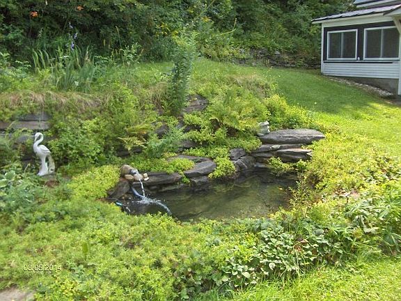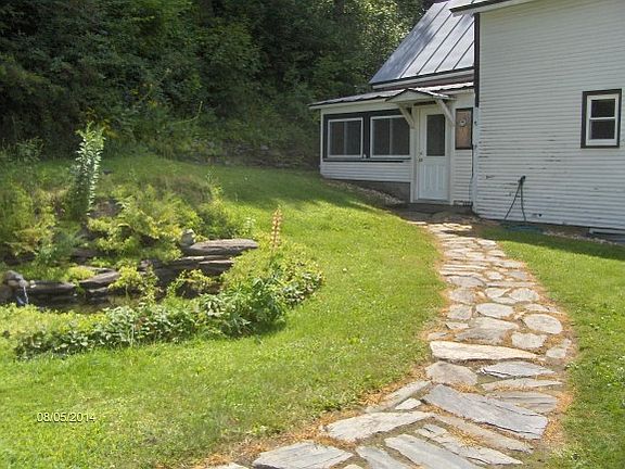 Simple living on small parcel conveniently located between Randolph and Bethel. Property has vegetable garden, perennials, small man made trickling water pool for fish or water garden. Well maintained one and a half story cape style home offering three bedrooms 1 1/2 bath. Large eat-in kitchen with plenty of cabinets and counter top space. Additional dining room with VT Castings propane stove, wood floors in multiple rooms, living room with brick hearth and wood stove insert with blower. Vinyl replacement windows throughout. Stone walkway entrace to a combination mudroom/laundry room area. There is an enclosed 3 season room with abundant natural light. Propane furnace is a 3 year old forced hot air. Master bedroom area has a walk in closet, heat pump air conditioning. Bedrooms sizes are well proportioned. Heated detached 2 car garage with auto opener, extra storage above. New VT state approved engineered designed septic system.