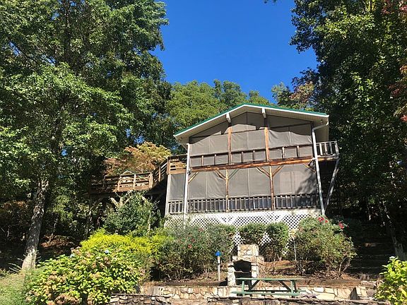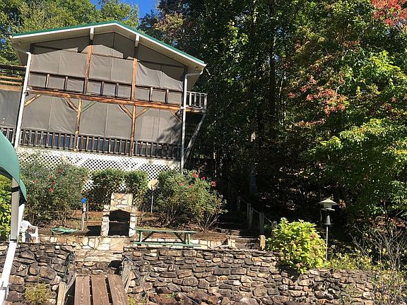 Beautiful home on Pristine Lake Santeetlah with easy access, plenty of parking, and outside entertaining area! Home has large open living/kitchen with wood burning fireplace and sliding doors to screened porch and open deck. Master and additional bedroom/bath on main level and lower level has bedroom/bath, laundry and living area that leads out to an additional screened porch, rock patio entertaining area and private dock. Home has wood floors, updated appliances and metal roof. Home has a large garage that's currently partitioned as a billiard room. Come enjoy your Happily Ever After on Lake Santeetlah!