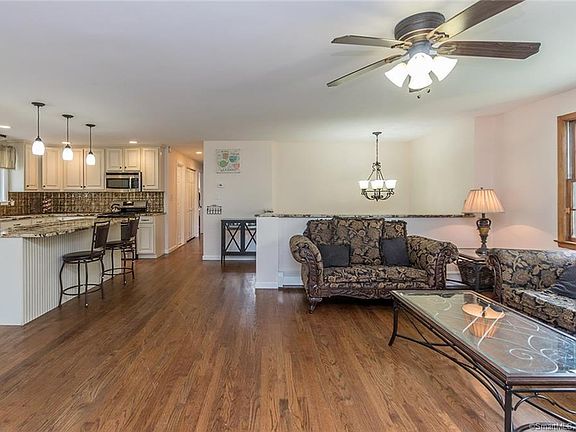 Situated on a quiet cul-de-sac is this completely updated and redesigned 3 bed 2 full bath raised ranch with over 1800 square feet of living space between the first floor and the finished lower level. The kitchen, the bathrooms, the flow, all redone to reflect current trends. The newly-remodeled kitchen features granite, SS appliances, an island and open concept to the dining and family rooms. Both full baths have all been completely updated. The recently redone lower level offers a great option for a sizable master with large closet space and full bath. The outside is an absolute paradise - .6 of an acre featuring an expansive slate patio, refurbished deck with built-in grill and sink and newly-installed side patio all coupled with beautiful plantings,. This is truly an entertainers delight and a very special property. Don't let this one pass you by! Some of the many updates include: Remodeled kitchen and baths, opened up kitchen, dining and living room to provide an open concept, new driveway, enormous slate patio and stone work, updated deck with built-in bar and grill, brand new side patio, new windows, and many more.
