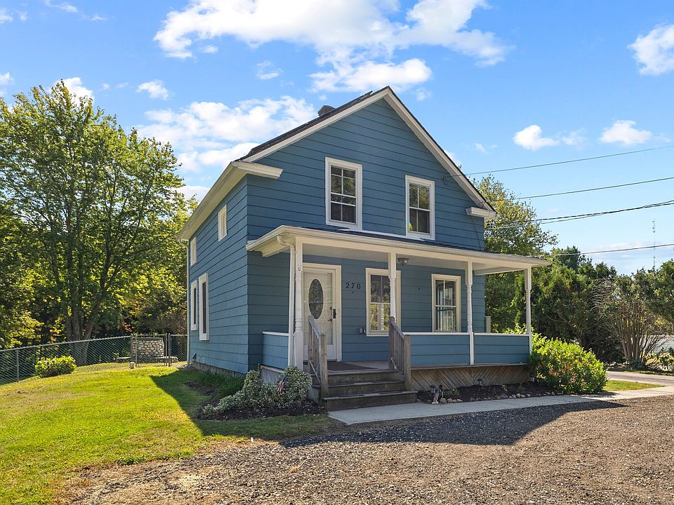 Here is a cute and cozy farmhouse style home with a big, fenced yard and a three-level barn. Located on a quiet road with easy access to schools and shopping. Beautiful oak floors both floors. The home has been improved with modern kitchen and bath, new mechanicals throughout and a whole-house standby generator. Solar panels provide electric power. The owner has added an efficient heat pump heating and central cooling system, with an oil-fired boiler for backup. New oil tank and high efficiency water heater. The antique post and beam barn is a classic with lower and main level and a loft.